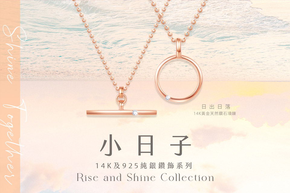 簡單線條的設計最適合日常風格配襯。《小日子》14K黃金&925純銀天然鑽飾系列,陪伴您度過每個日出日落。