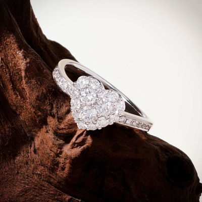 18K 白色黃金天然鑽石鑲嵌戒指