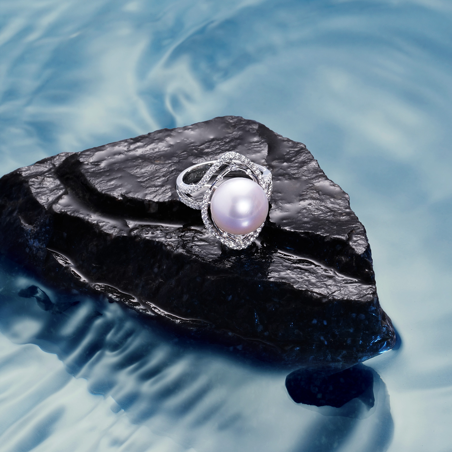 18K 白色黃金鑽石/珍珠戒指