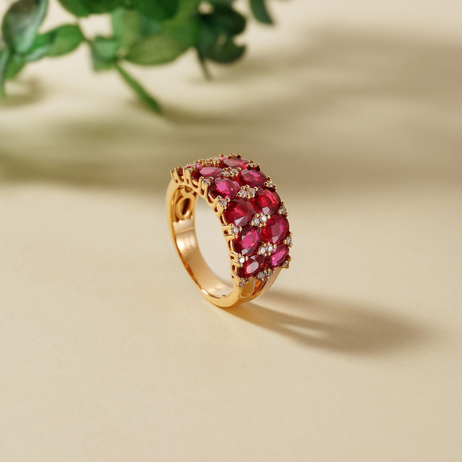 18K/750 紅色黃金 天然鑽石/寶石 戒指 金重:5.10克 美度:6 圓形 鑽石 總重量:0.21卡 鵝蛋 紅寶石 總重量:3.87卡