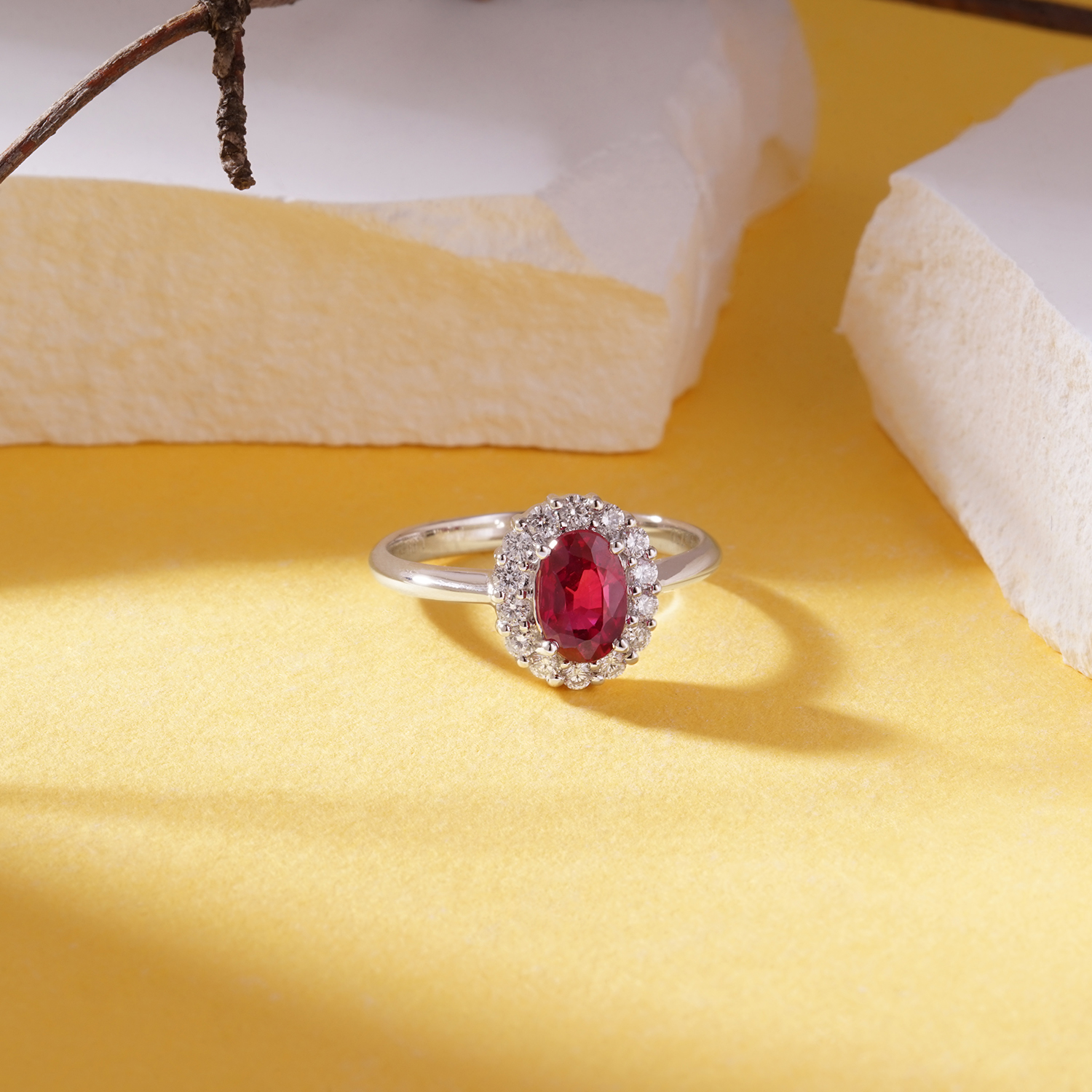 18K/750 白色黃金 天然鑽石/寶石 戒指 金重:2.90克 美度:6 1粒 紅寶石 總重量:1.00卡 圓形 鑽石 總重量:0.25卡 &