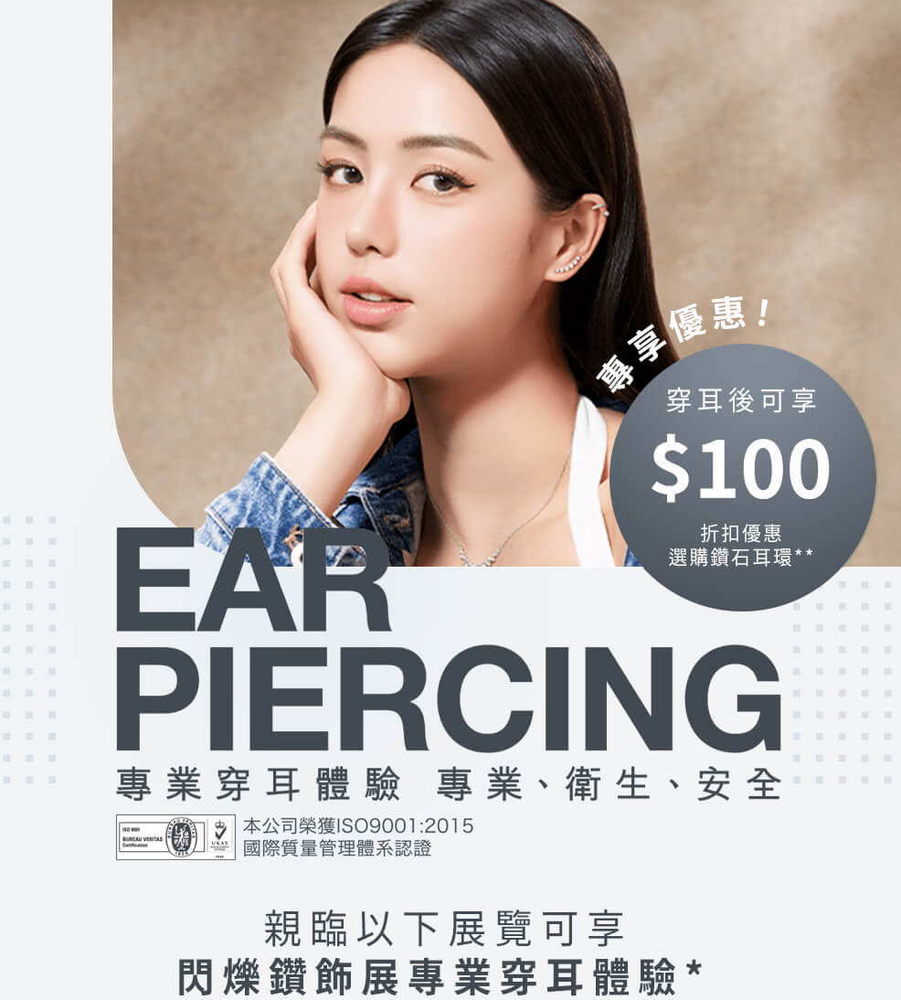 我們會為6歲或以上的顧客提供專業穿耳。12歲或以下需由監護人陪同穿耳,而外耳骨必須年滿16歲以上人士才可穿。更多詳情:點擊查看